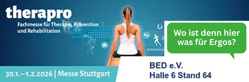 Auf der therapro in Stuttgart vom 30.01. bis 01.02.2026 finden Sie den BED und sechs seiner Kooperationspartner:
