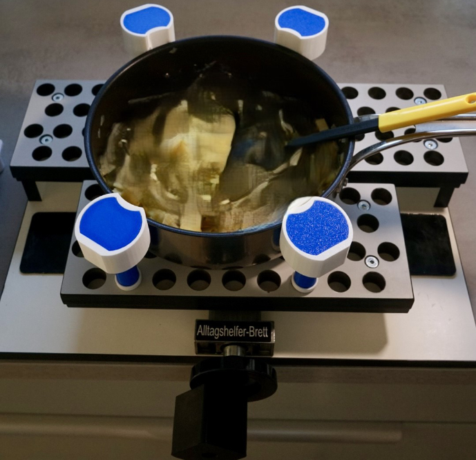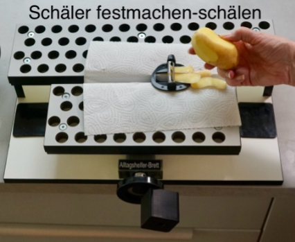 Das Alltagshelfer-Brett ist ein multifunktionales Hilfsmittel zur Förderung der Selbstständigkeit und Handlungsfähigkeit von Patient*innen mit Einschränkungen der oberen Extremität*en.