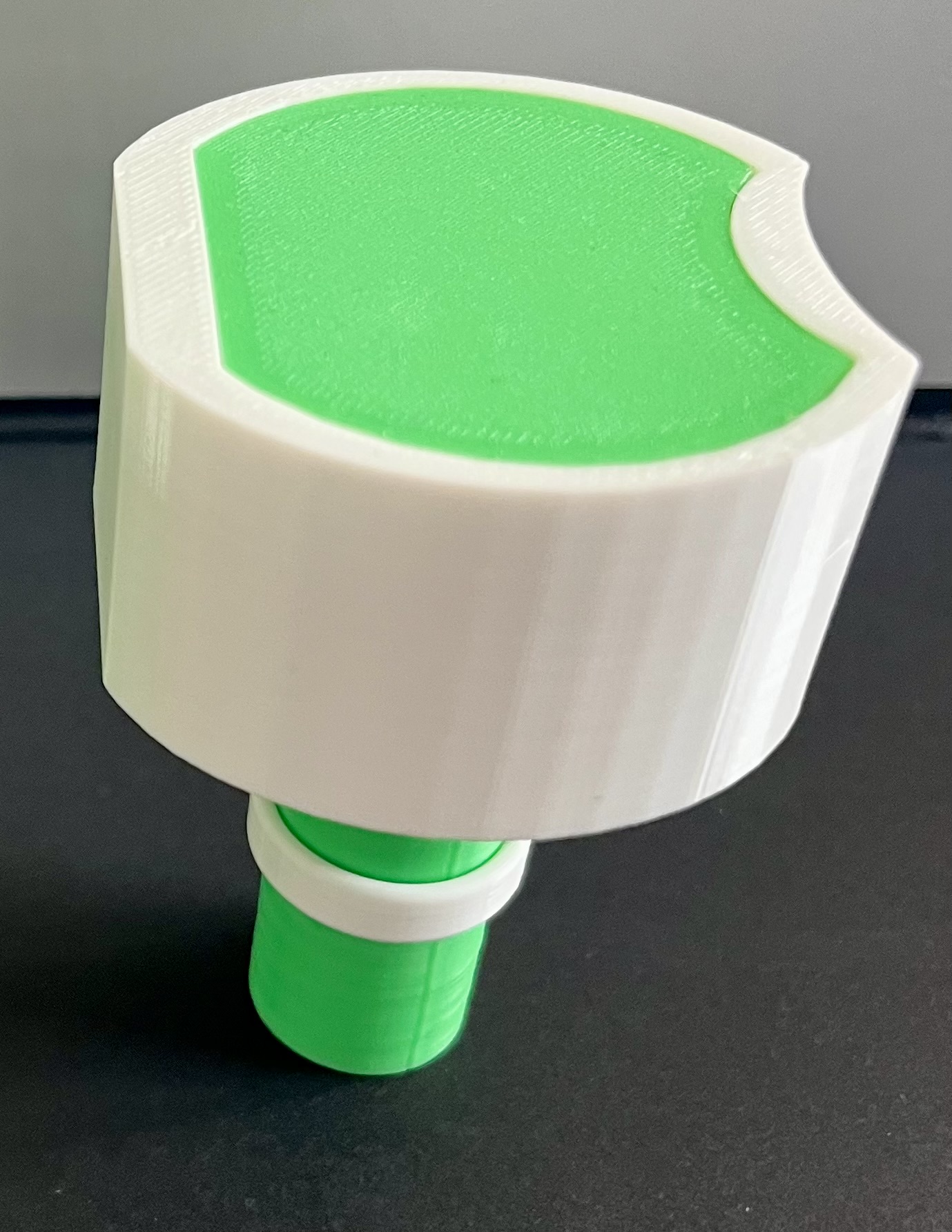 Der weiße Kontrastgummiring sitzt gut sichtbar etwa 3 cm oberhalb der Bodenfläche - für eine zielsichere, solide Platzierung der Steckhalterung auf dem Alltagshelferbrett.