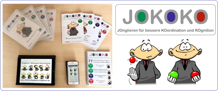 Mit über 60 Titeln im Buchhandel sind wir mit unseren Jonglier-Lernsystemen REHORULI® und JOKOKO® Marktführer im Bereich Jonglier-Lernmedien. Deutschlands meistverkaufte Jonglier-Anleitung "Jonglieren lernen mit Jongloro" ist aktuell in 14 Sprachen erhältlich und umfasst 34 Übungen mit 1 und 2 Bällen, um Schritt für Schritt erfolgreich das Jonglieren mit 3 Bällen zu meistern.